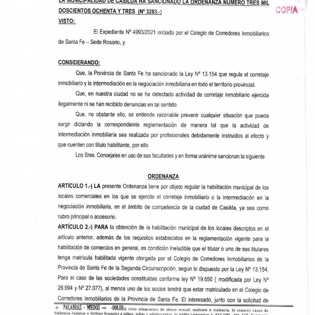 Ordenanza Nº 3283 - Casilda