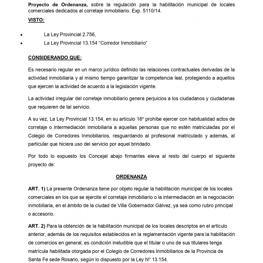 Ordenanza Nº 5110/14 - Villa Gobernador Galvez
