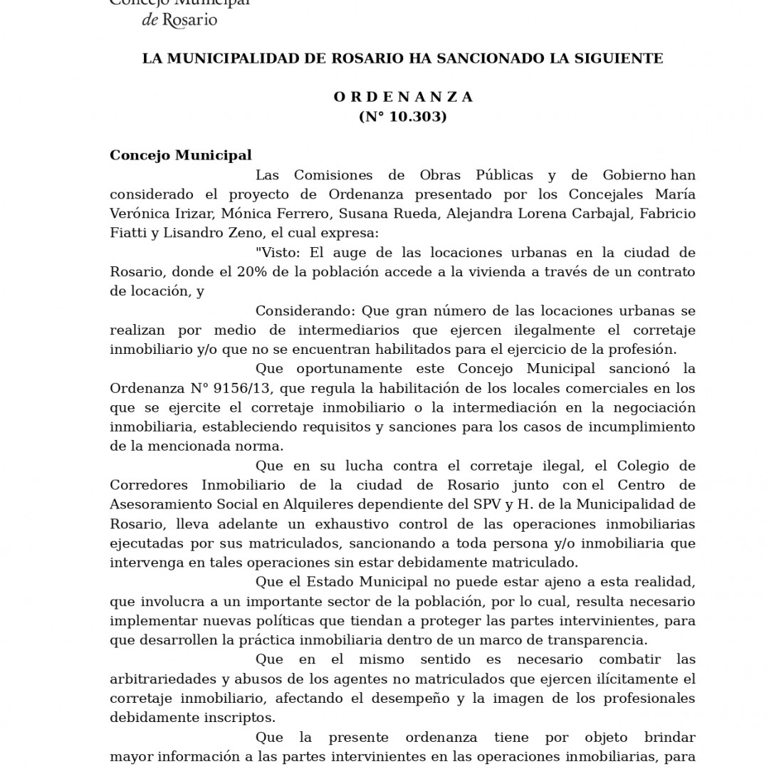 Ordenanza Nº 10.303 - Rosario