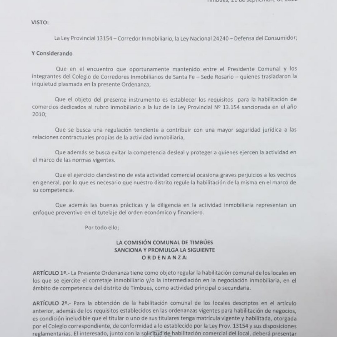 Ordenanza 164/2022 - Timbues