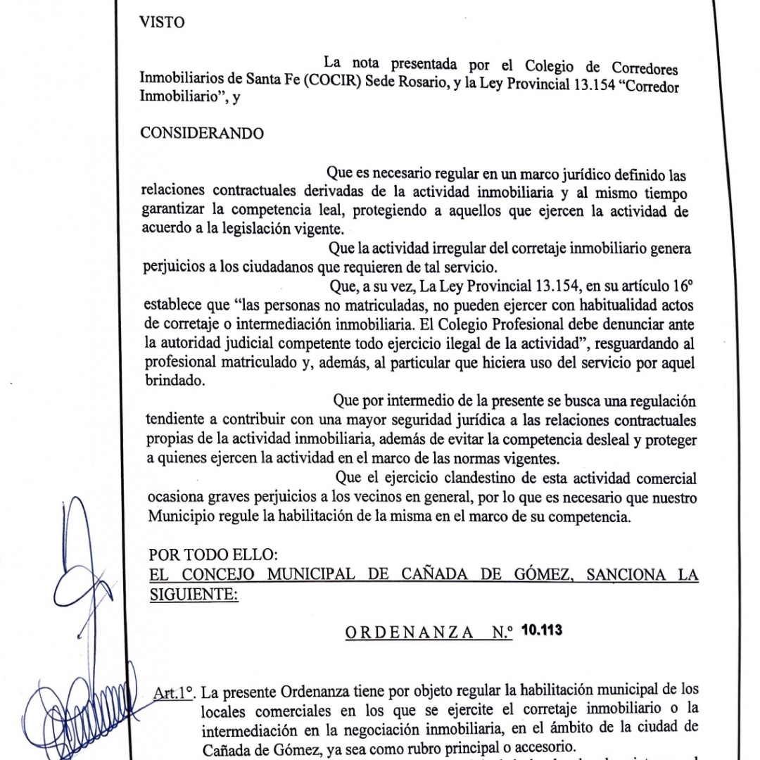 Ordenanza Nº 10.113 - Cañada de Gomez