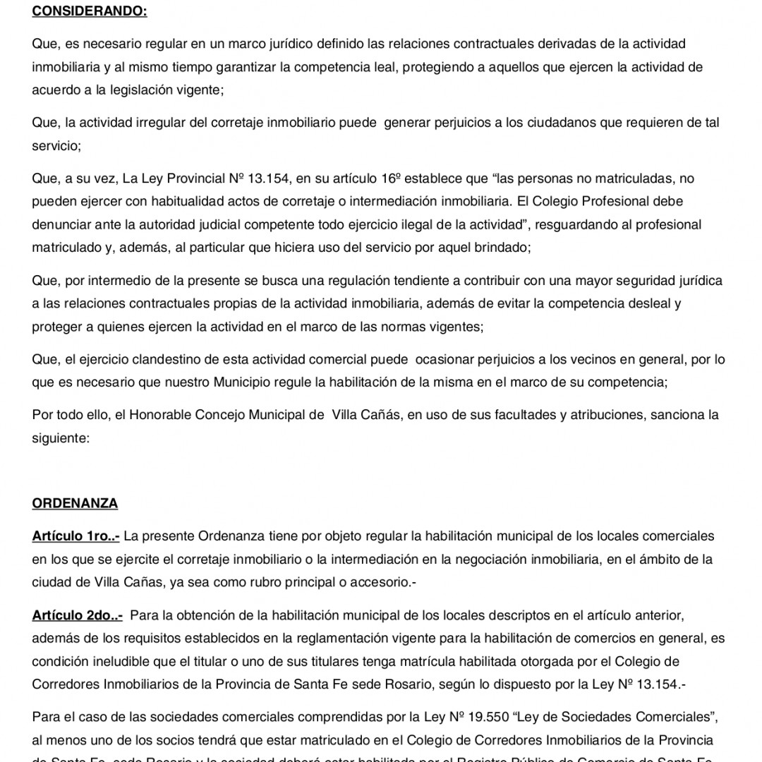 Ordenanza Nº 1308/22 - Villa Cañas